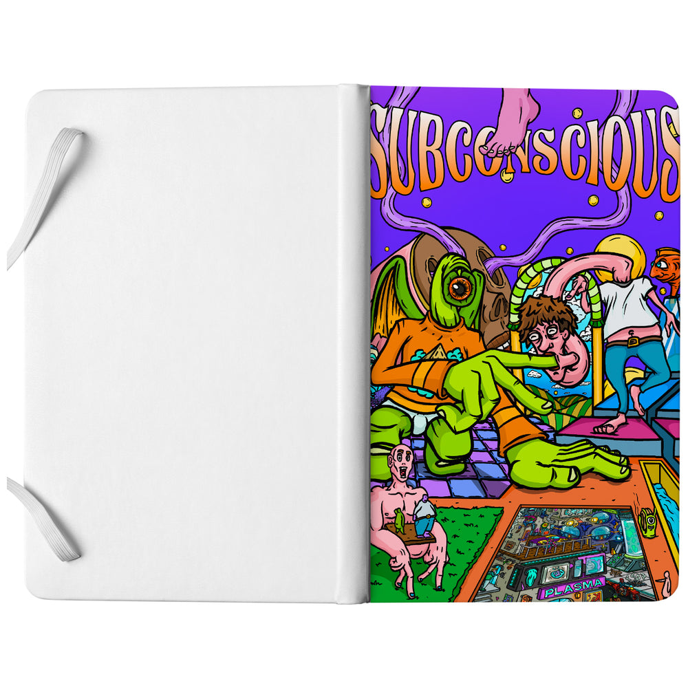Taccuino Subconscious dell'album Chaotic book di Daniele Pierantozzi: copertina soft touch in 8 colori, con chiusura e segnalibro coordinati