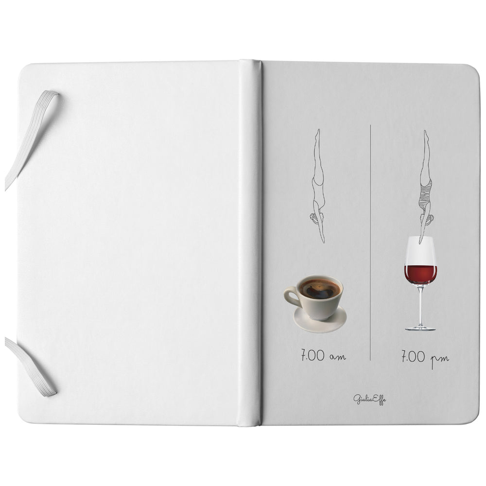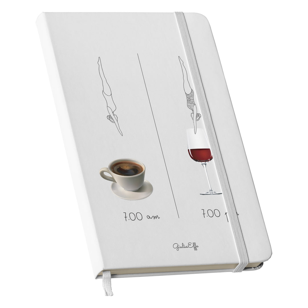Taccuino 7 am 7 pm dell'album Creatività su carta di GiuliaEffe: copertina soft touch in 8 colori, con chiusura e segnalibro coordinati