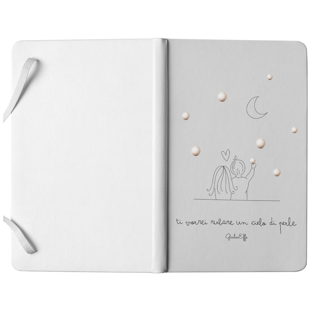 Taccuino Un cielo di perle dell'album Creatività su carta di GiuliaEffe: copertina soft touch in 8 colori, con chiusura e segnalibro coordinati