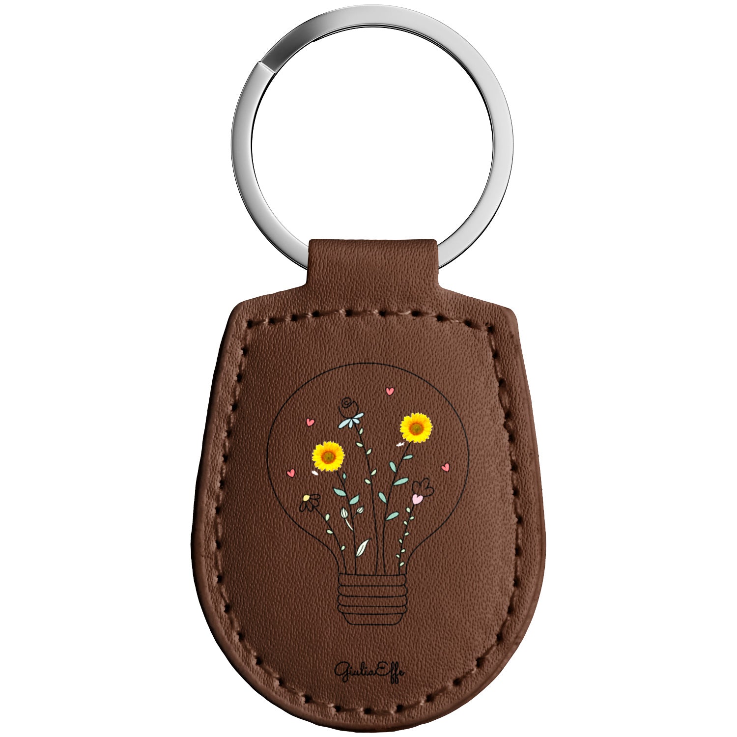 Portachiavi in pelle Lampadina dell'album Creatività su portachiavi di GiuliaEffe con anello in metallo, Disponibili in 6 Colori, Stampa di Alta Qualità